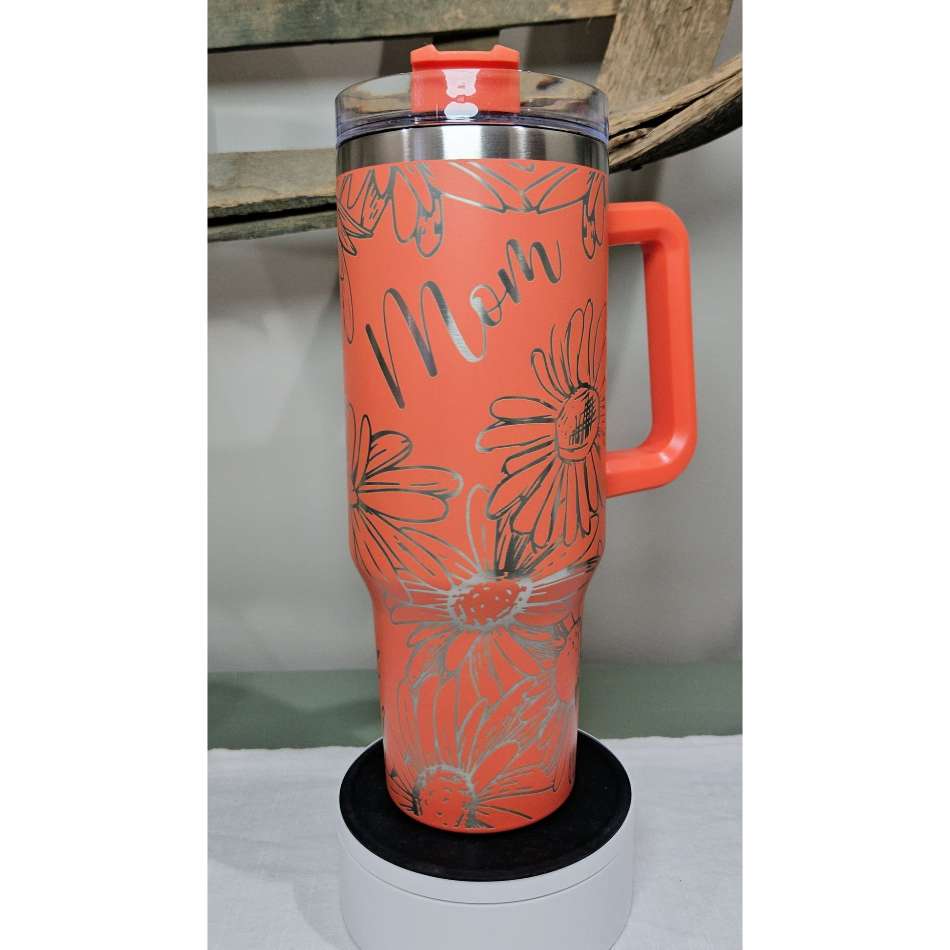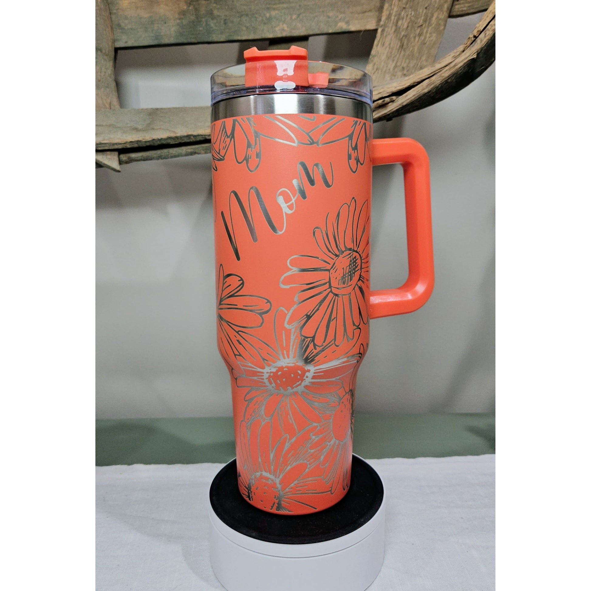 Daisy Mom 40 oz Custom Laser-Engraved Orange Tumbler – Personalized Insulated Drinkware
