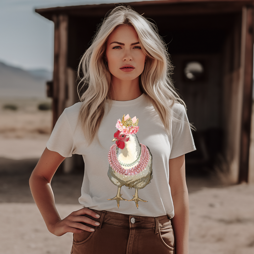 Glam Chicken with Crown and Pearls Tshirt