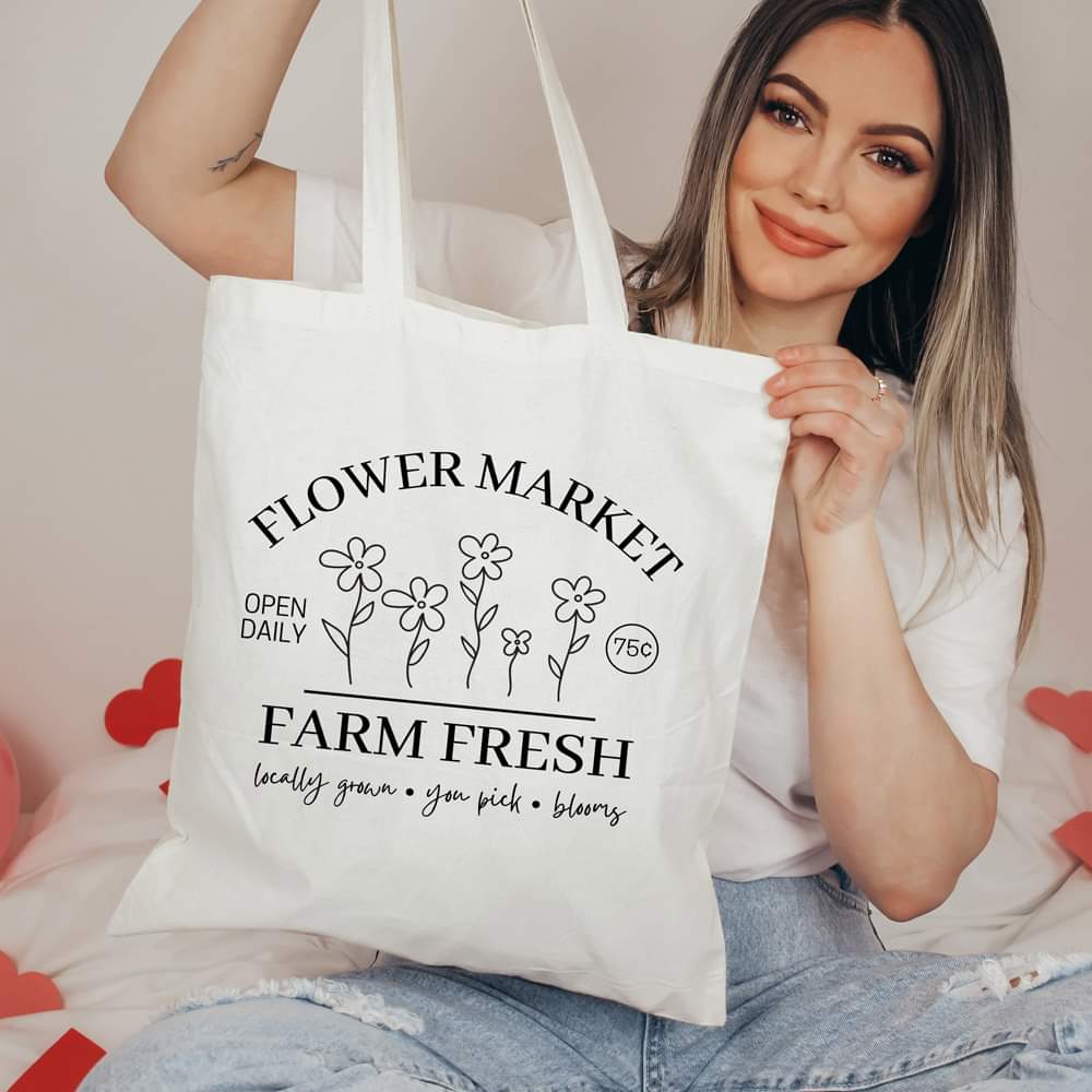 These totes are the perfect environmentally friendly reusable bag. Great for farmers markets, bookstores, school, shopping and so much more!